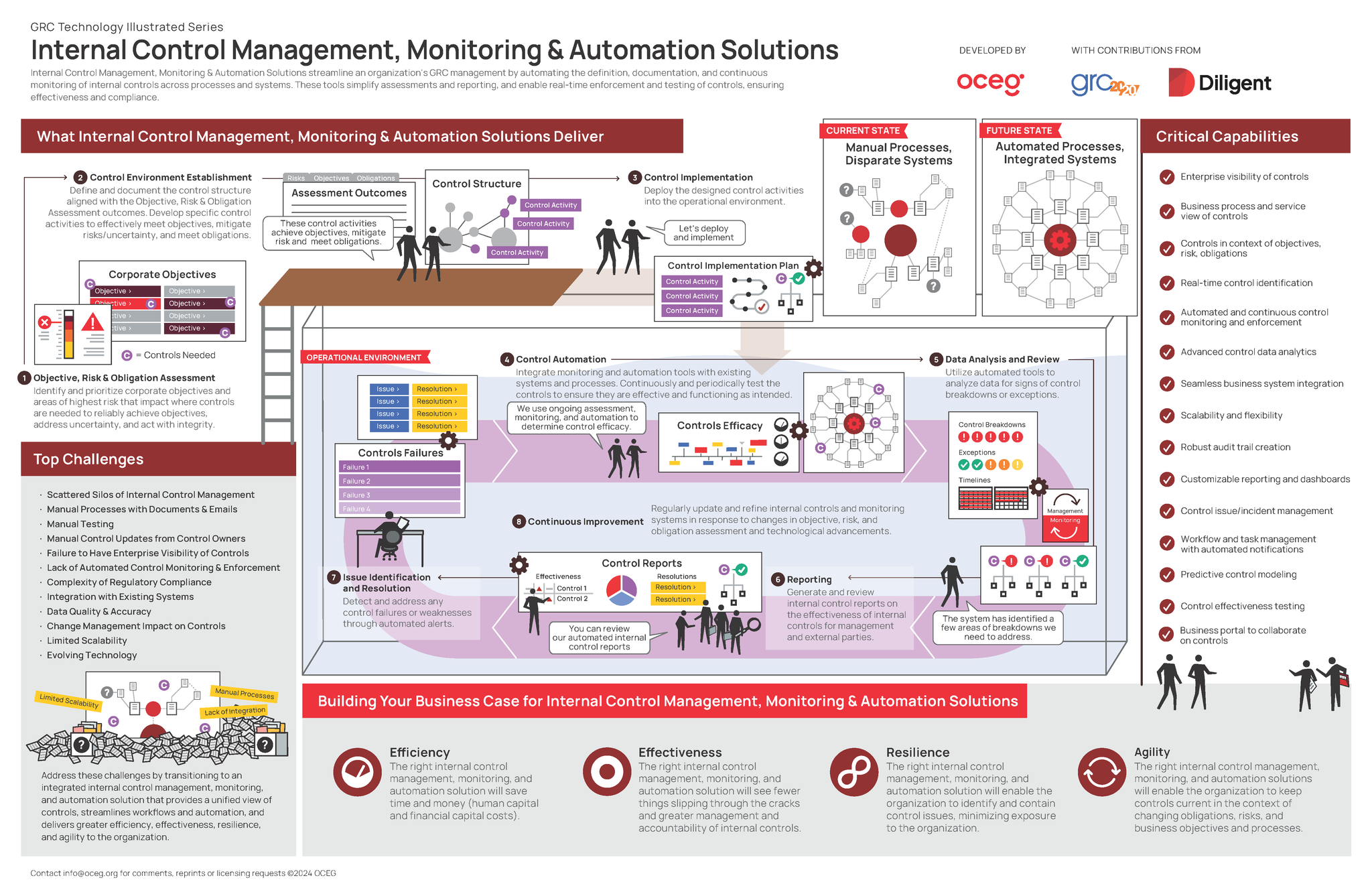 This installment in the GRC Technology Illustrated Series outlines how Internal Control Management, Monitoring & Automation Solutions streamline an organization's GRC management by automating the definition, documentation, and continuous monitoring of internal controls across processes and systems. These tools simplify assessments and reporting, and enable real-time enforcement and testing of controls, ensuring effectiveness and compliance.
