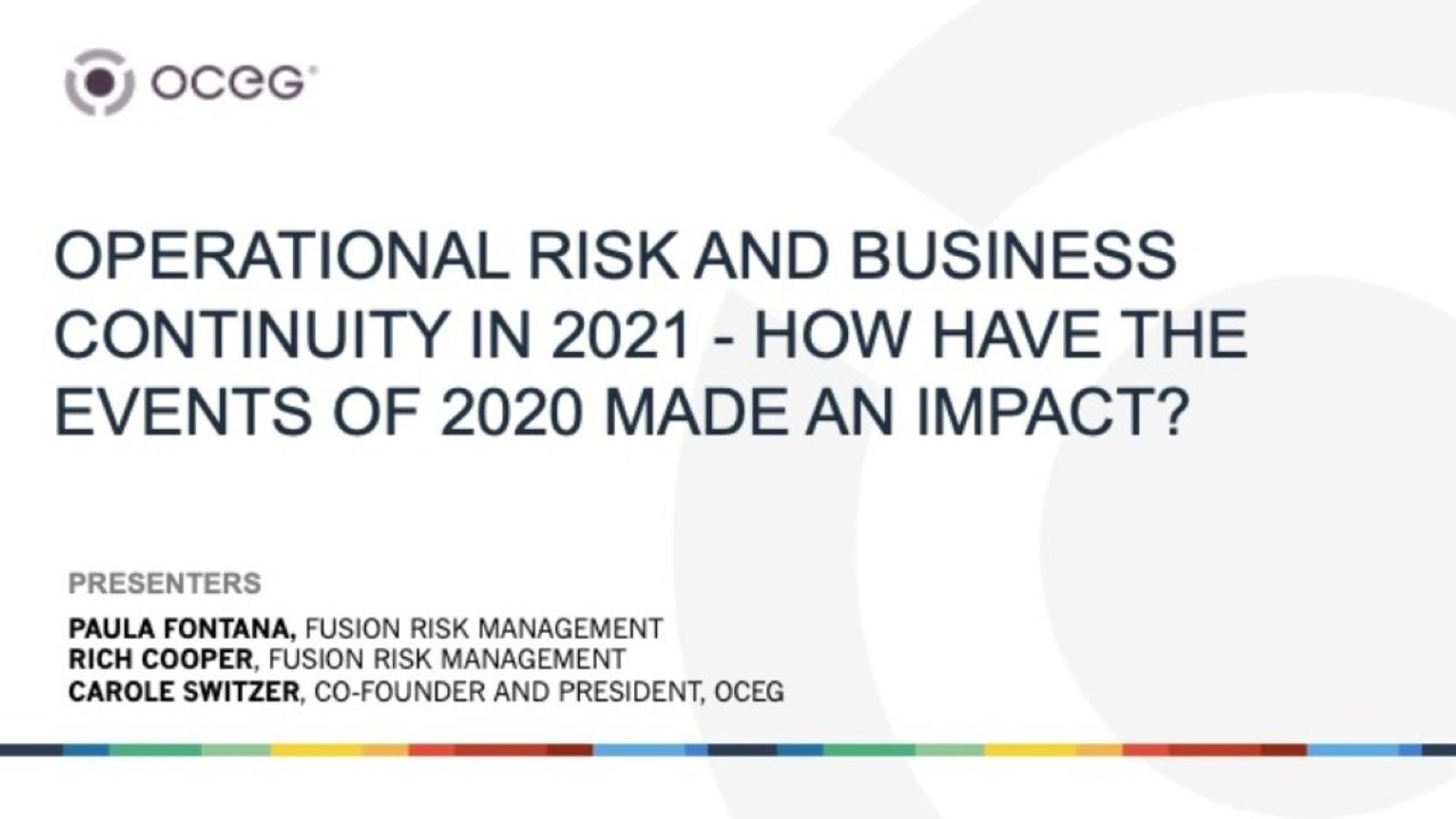 Operational Risk and Business Continuity - Impact of 2020 Events