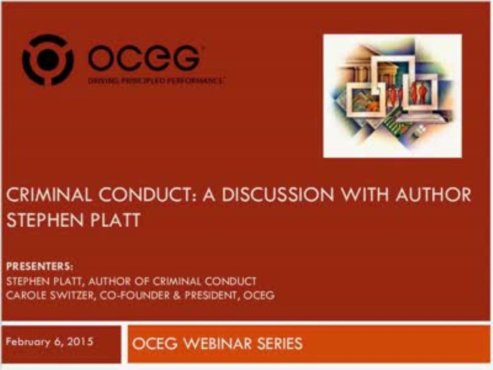 We are very pleased to launch OCEG™’s 2015 Author Series, with a special guest, Stephen Platt, author of the just released book,Criminal Capital. In this riveting book, Mr. Platt examines how the finance industry facilitates crime and the causal linkages between excessive risk taking, rate rigging, sanctions evasion, money laundering, improper selling of products and criminal facilitation.